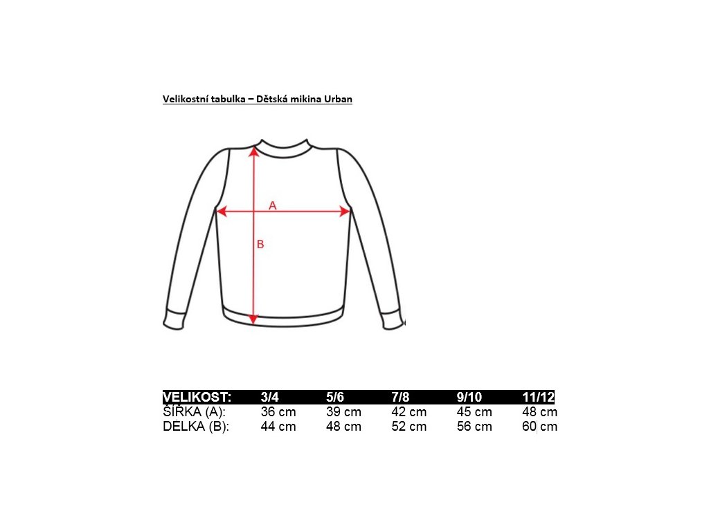 Velikosti: 3/4 roky, 5/6 roků, 7/8 let, 9/10 let, 11/12 let.